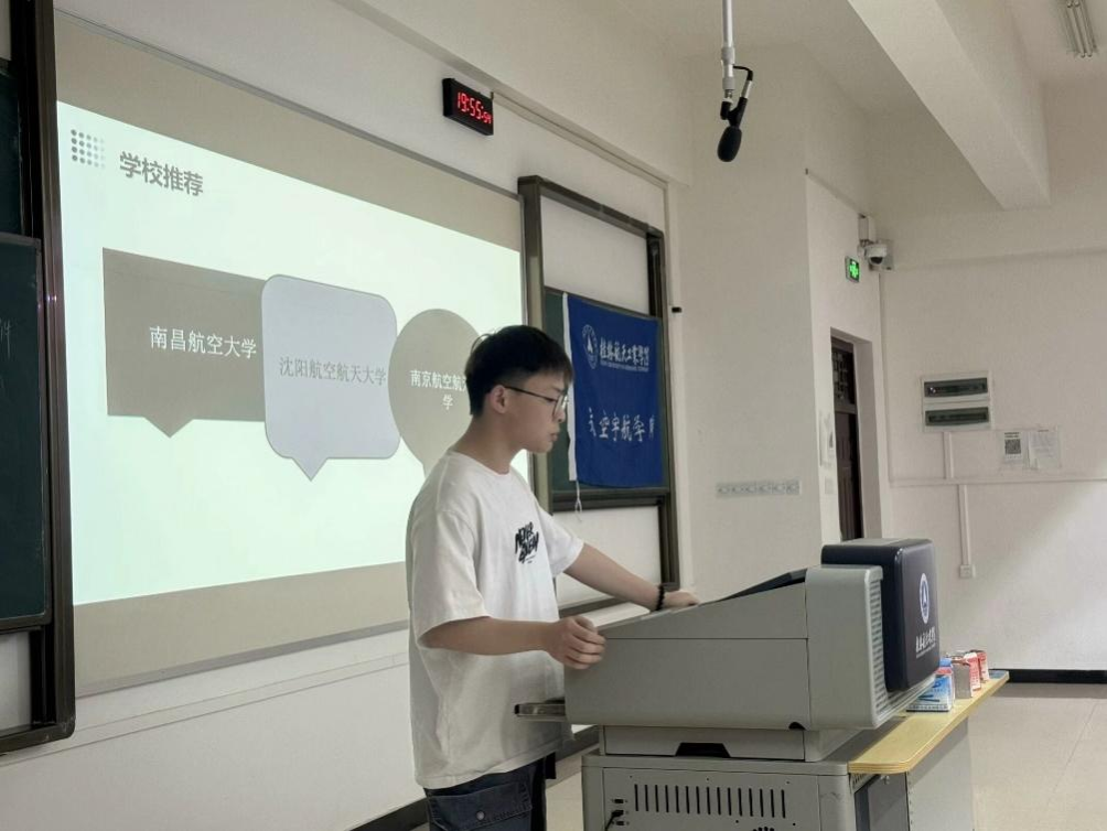 为充分发挥优秀青年学子的榜样引领作用,激发青年学子的学业生涯规划和职业生涯规划,推进“航宇·星”学生教育工程,学院于5月8日晚在探天楼B202教室举办了主题为“航宇·星耀 青春榜样 追光而行”的优秀学子经验分享交流会。交流会由2023级辅导员蓝彬主持。