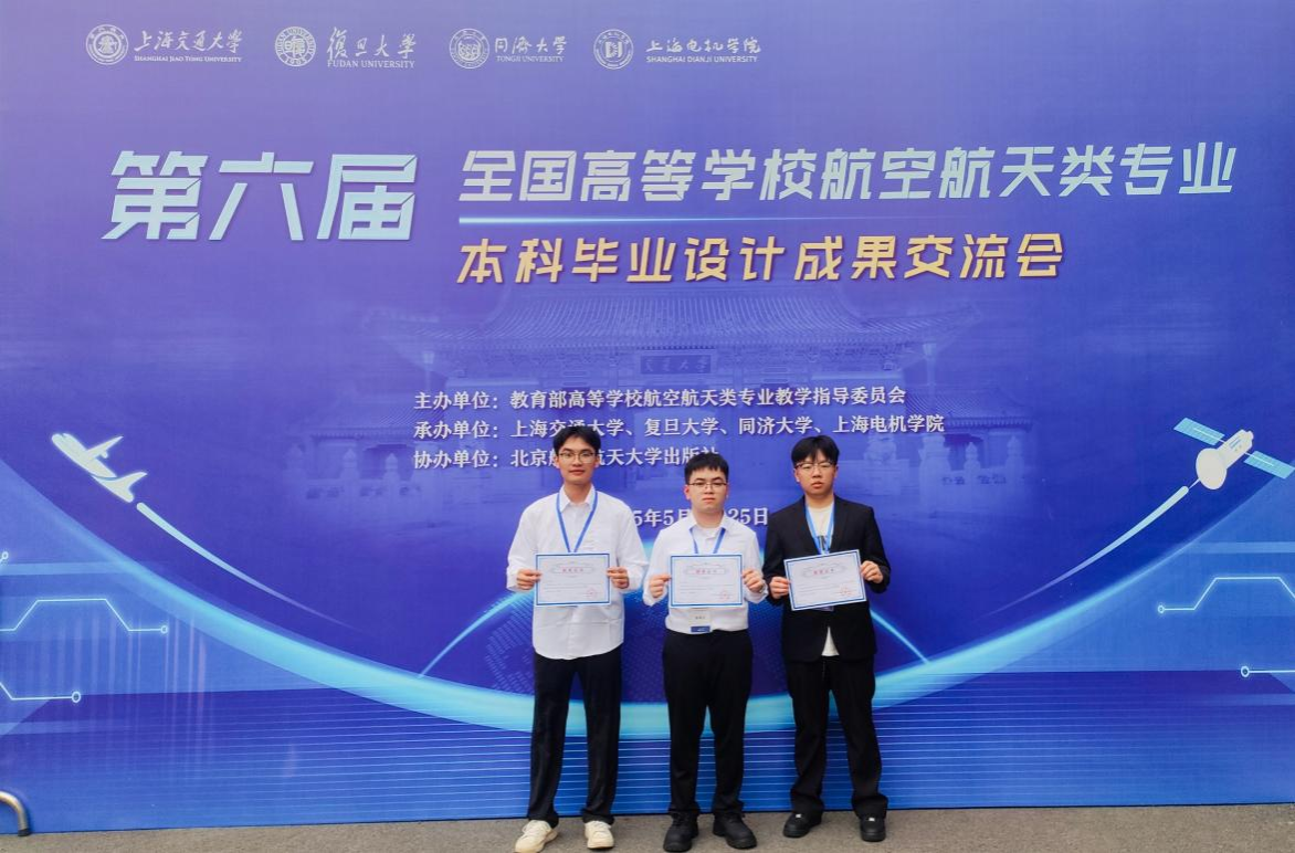 2025年5月23日-25日,由教育部高等学校航空航天类专业教学指导委员会主办、上海交通大学、复旦大学、同济大学、上海电机学院共同承办的第六届全国高等学校航空航天类专业本科毕业设计成果交流会在上海成功举办。作为广西区内唯一开设航空航天类专业的本科高校,学校m88明昇选派3名2025届毕业生,由学院教师黄仕卓带队前往,分别参与飞行器制造工程组、飞行器动力工程组、飞行器质量与可靠性组的交流展示。在本次交流会上,我院师生表现优异,斩获个人二等奖1项、个人优秀奖2项。此外,学院副院长王勇军教授作为特邀专家,参与了“无人飞行器自主控制”组的评审工作。