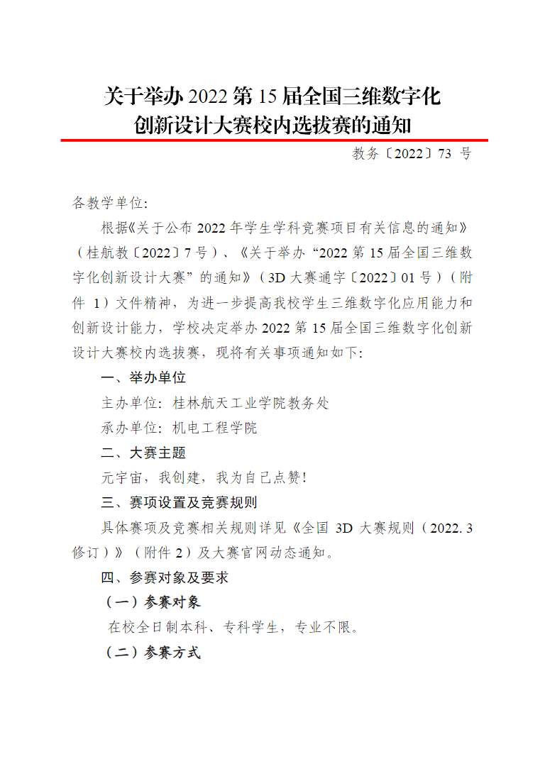 关于举办2022第15届全国三维数字化创新设计大赛校内选拔赛的通知