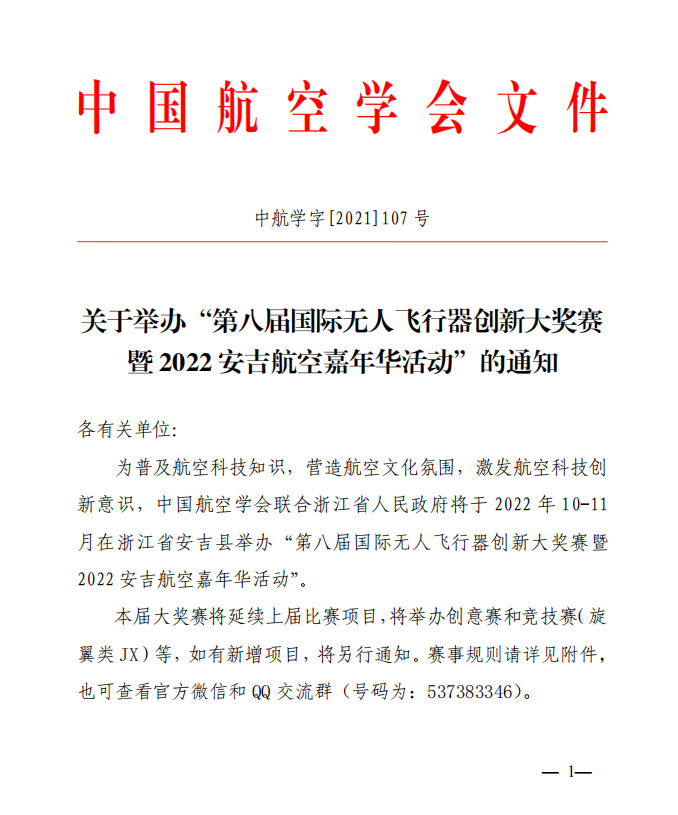 关于举办“第八届国际无人飞行器创新大奖赛暨2022安吉航空嘉年华活动”的通知