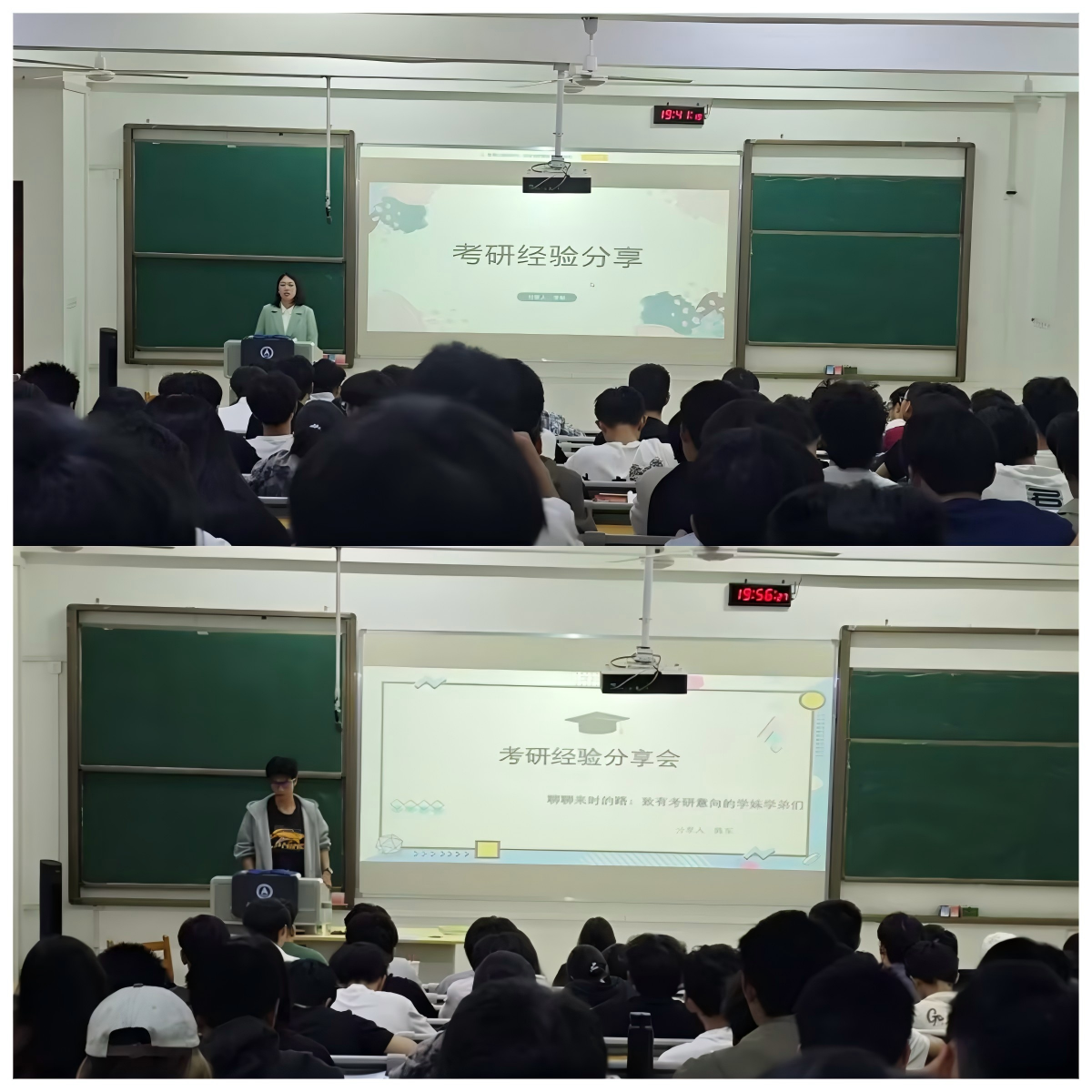 最后,考研学子李航和陈东分享了他们的考研经验,从院校选择、备考计划制定到心态调整,他们为有志于考研的同学提供了备考的方向,两位学子鼓励同学们要坚定信心、持之以恒,为实现自己的考研目标而努力奋斗。