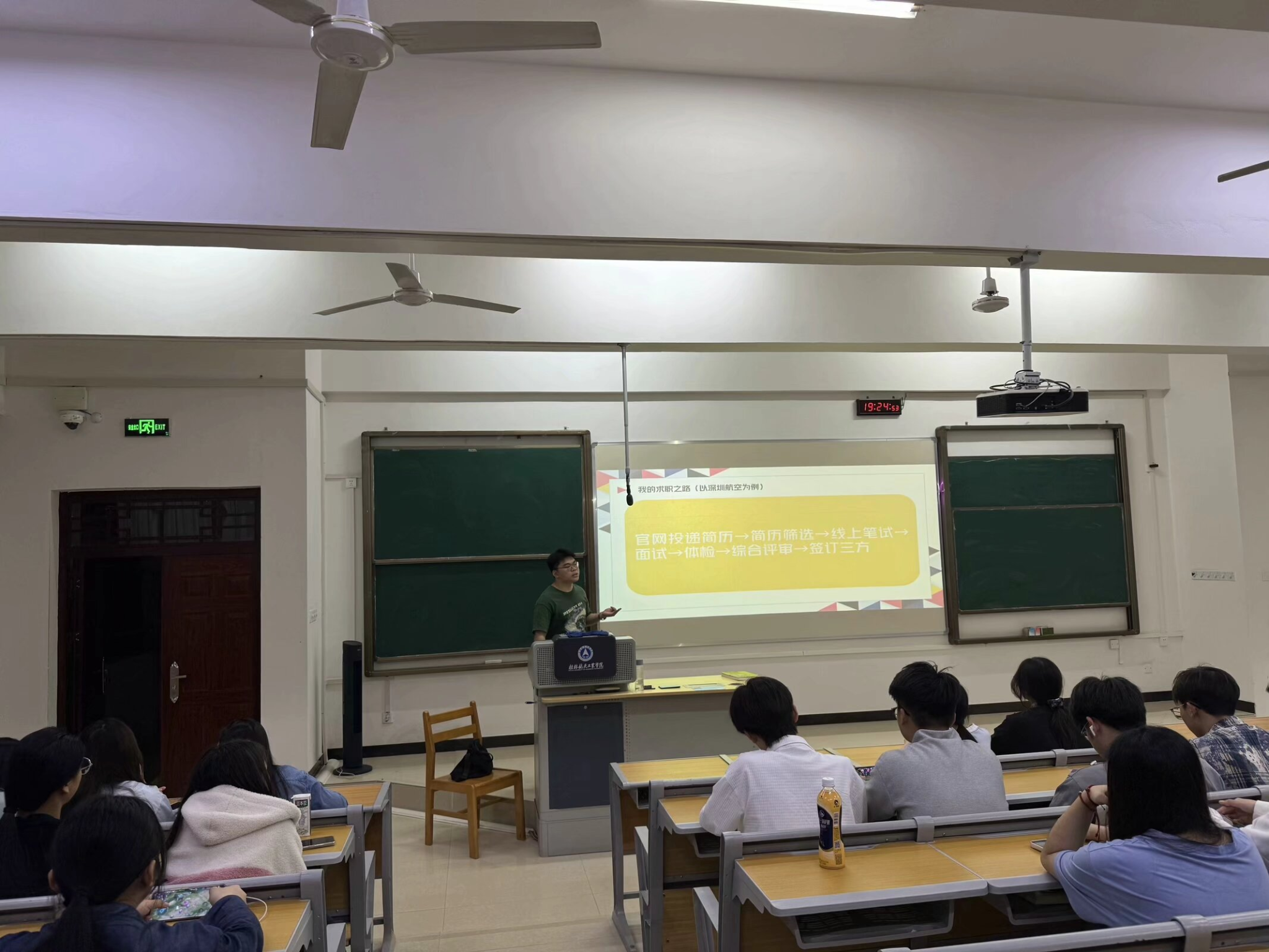 就业榜样代表唐智结合当前就业市场的形势,聚焦职业规划分享自身求职经历,为同学们讲解了如何在大学期间积累实践经验、提升职业技能,以及如何制定合理的职业发展路径。唐智的分享让同学们对未来的职业发展有了更深入的思考和认识。