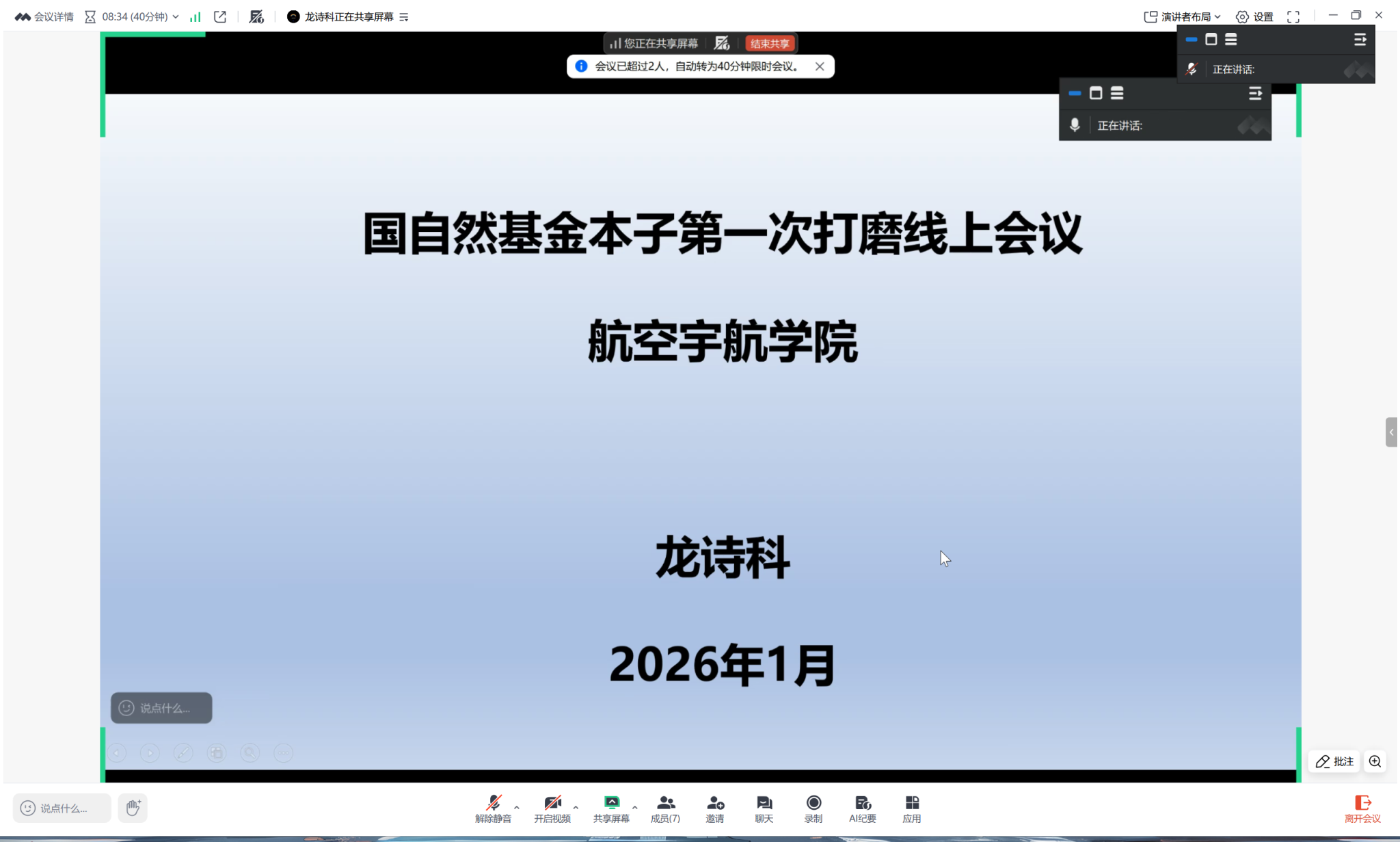 为深入贯彻落实学校科研工作部署要求,进一步提升国家自然科学基金项目申报质量,2026年2月23日下午,m88明昇以线上形式举办国家自然科学基金“第一轮打磨”经验分享会。副院长龙诗科出席并主持会议,学院各系所(团队)教师代表参加。